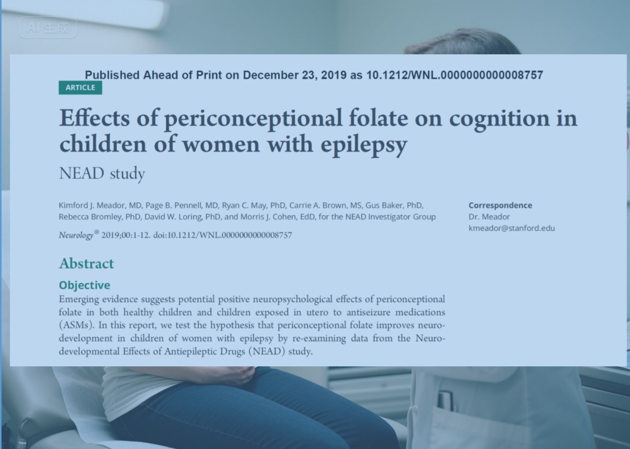 Przy wsparciu Amerykańskiego Narodowego Instytutu Zdrowia, w badaniu NEAD obserwowano wyjątkową grupę matek i dzieci w wieku 25 lat cierpiących na padaczkę ośrodków w Stanach Zjednoczonych i Wielkiej Brytanii od 1999 do 2004 roku. Wszystkie uczestniczące matki przyjmowały pojedynczy lek przeciwpadaczkowy i ich matki dzieci zapisywano zaraz po urodzeniu na stałą obserwację.