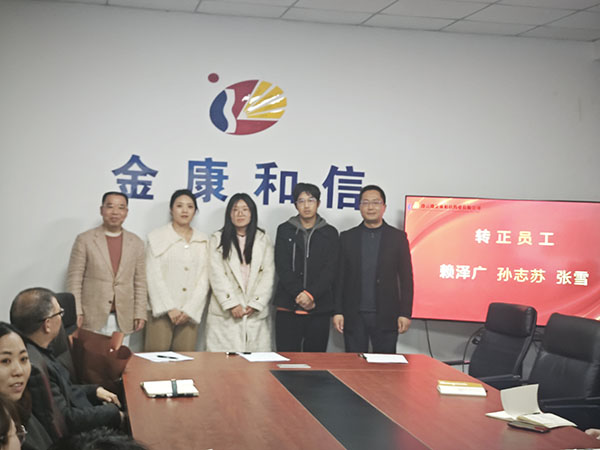 W obecności wszystkich kolegów w charakterze świadków trzech nowych członków — Lai Zeguang, specjalista ds. projektowania; Sun Zhisu, specjalista ds. rejestracji; i Zhang Xue, specjalista ds. HR – pomyślnie ukończyli okres próbny i oficjalnie stali się częścią rodziny JKHX. Od eksploracji i adaptacji w okresie próbnym po pewne pójście naprzód po zatrudnieniu na pełny etat – zdobyli uznanie dzięki swojej sumiennej pracy, a jednocześnie wnieśli do zespołu nowe pomysły i witalność.